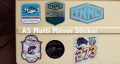 6種のステッカーが一枚のシートにおさまった、ミラーベースのステッカー。6種いずれもどこかがミラー状になったデザインです。ランドナーなんかのエンブレム調だったり、アメリカンな機械や電気製品にさも貼ってありそうなロゴ調だったり・・・どこかレトロな雰囲気があって、タックルボックスや車はもちろん、いろいろなものの雰囲気UPに貢献します。