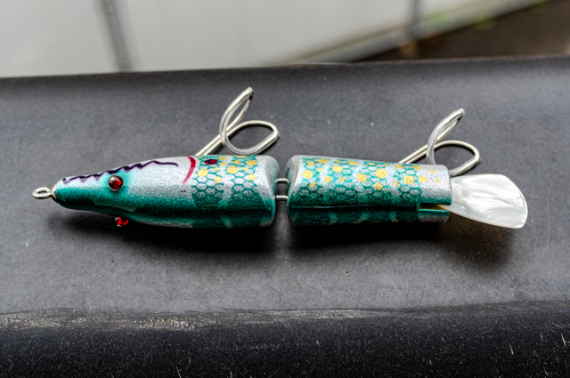 まずはデフォルトでお楽しみいただきたいところですが、前後のサーフェイスリグ下に仕込まれたタングステンボール、フロントボディにビスで留められたドーナツ状のウエイトは、好みに応じて調整も可能です。