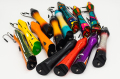 んで、今回の長男cut-away(カッタウェイ)の方はダータータイプというより首振りターンの得意なビッグポッパーとして作ったプラグで、材質も違い、高浮力なので、見た目と違って図体のわりに器用なプラグです。カプン、タプッと丁寧にターンさせて、下アゴポッパーなので、首振り、ターンの際に 突っ込み、おじぎを伴うので正面からいうと∞字を描く感じでアクションしますので、とにかくしつこくネチネチとやってブラックバスブチギレ状態を堪能してください(笑)。