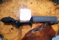 ベイクライト素材を使ったグリップです。ベイクライトとは最も古いプラスティックの一種となります。フェノール樹脂を浸透させた布(時には紙)を積層させブロッグ状にした後、削りだすことによって形を決めていきます。