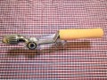 ベイクライト素材を使ったグリップです。ベイクライトとは最も古いプラスティックの一種となります。フェノール樹脂を浸透させた布(時には紙)を積層させブロッグ状にした後、削りだすことによって形を決めていきます。