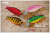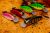 カラーは奥列左から、ニジマス(RBT)赤ザリ(RCF)チャートクロー(CCF※HeadHunters別注色)ファイヤータイガー(FT)手前、金黒(GBS)