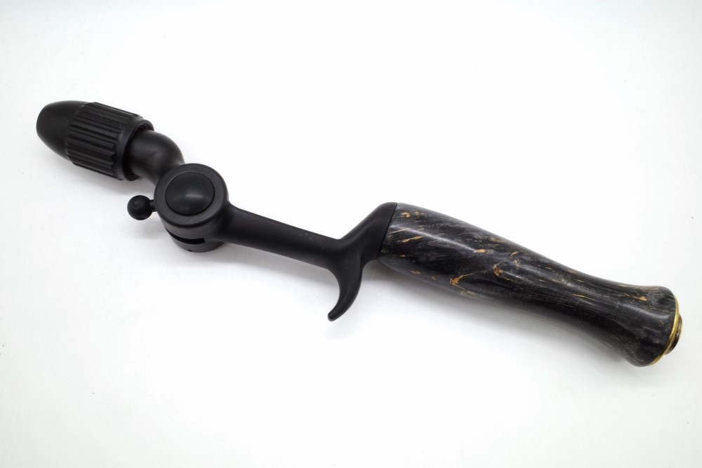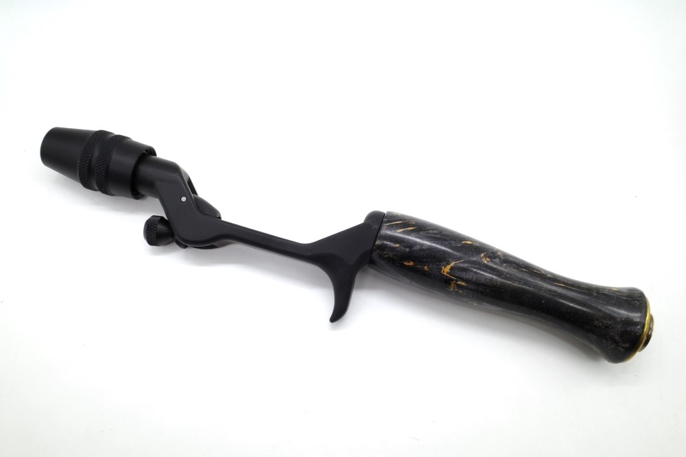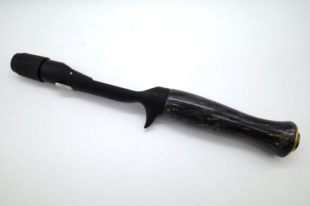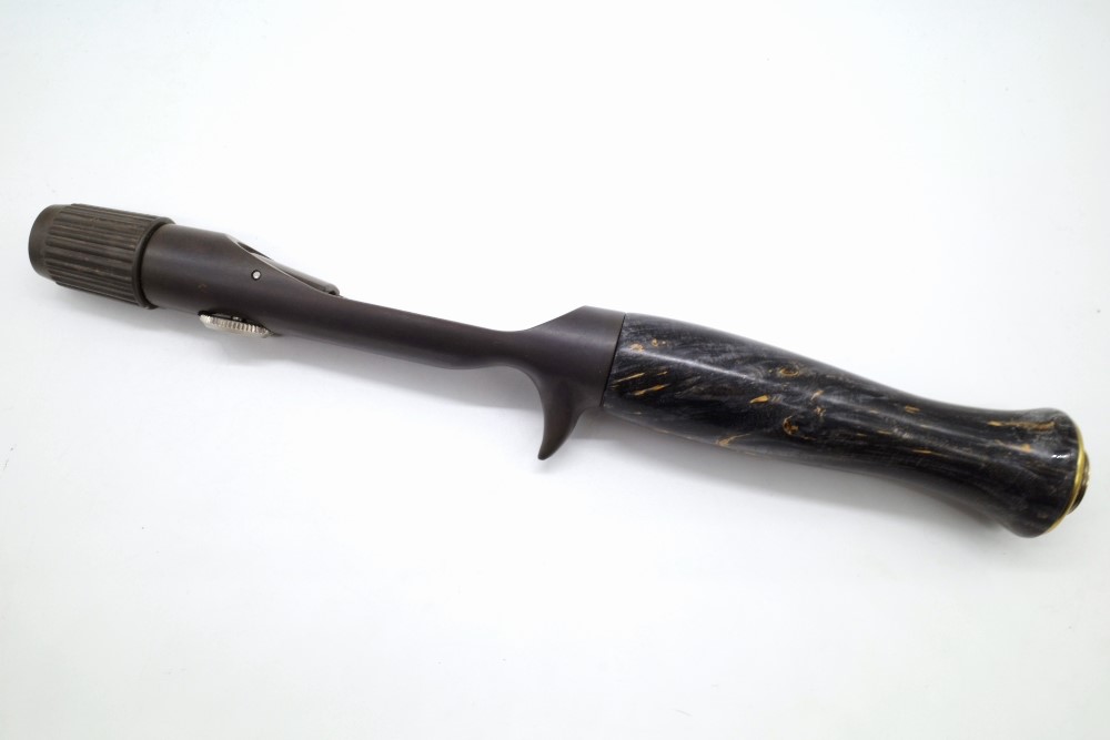 シルバーアクセサリー職人で専門学校で教師も務めるE-No Produtsの技巧が細部に渡り炸裂したグリップ。ウォールナット仕様。