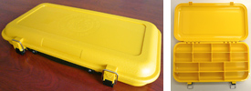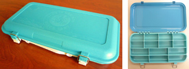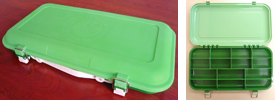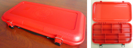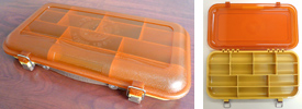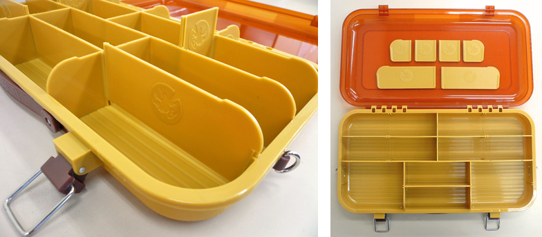 ジョンボートやフローター、カヤックなどの限られたスペースで使い勝手の良い、片面のみを使うアタッシュケース型。トラブルが多かったロックパーツは丈夫な作りでしっかりとフタをホールドします。ハンドルは、僅かにソフトな風合いに仕上げ、運ぶ時も心地良さが感じられるでしょう。5/8~1oz.クラスのトップウォータープラグをベースに考えて作られたコンパートメントと可変式仕切り板によって、お気に入りのレイアウトで“大好きなプラグだけを”連れて行ってあげて下さい。ボックスの左右側面に装備されているDリングには、標準装備されている着脱可能なプラッギン専用「ストラップハンガー」をセットし、フローター等の固定(ストラップ等をご用意下さい。)が可能です。