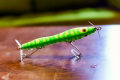 ボディのその異様な長さはアピールに大きく寄与し、しかし細さは逆に威圧感を軽減しプロップの効果を強調する。長いことで魚のサイズも選べ、細く喫水の深いことは魚のバイトを誘発しやすく、プレッシャーにも決して弱くない。あながちこじつけとも断言出来ないその一見矛盾するアドバンテージを証明すべし。