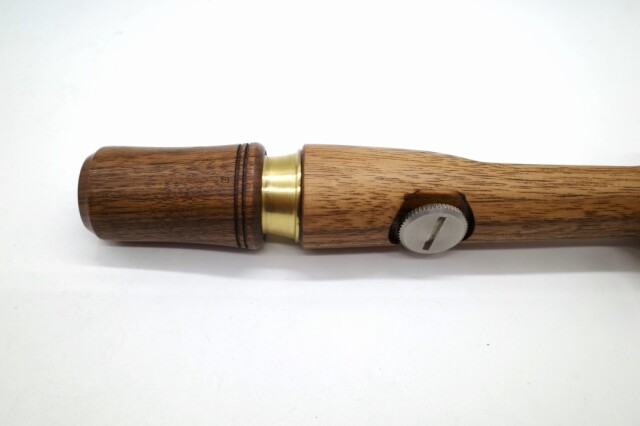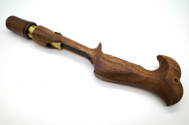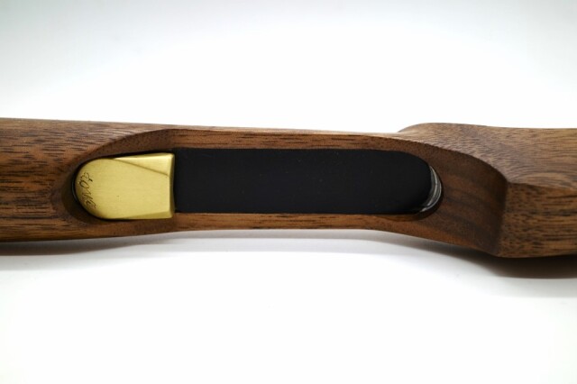 シルバーアクセサリー職人で専門学校で教師も務めるE-No Produtsの技巧が細部に渡り炸裂したグリップ。ウォールナット仕様。
