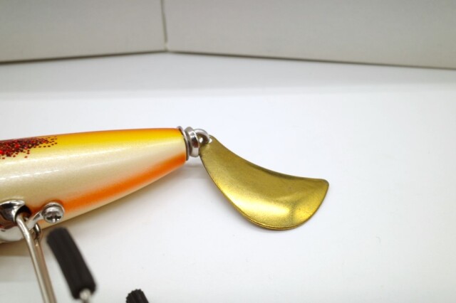 ボディを横にひねりながらのダイブと同時に口部とブレードから出るふたつのバブルサウンドでアピールするダーティングミノー。