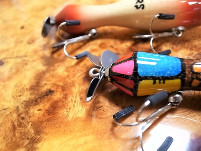 15年くらい以前に一度リリースした事のあるプラグです。んで、久しぶりにもう一度つくりました、ボディ形状サイズなど基本的な部分は旧タイプと同じですがリアのプロペラ機能部を少し変えてあります。ステンレス0.5mmのやや薄のプロペラを2枚重ねに装着してます、一応自分ではダブルスウィッシャーとしてつくったつもりです。なのでスライドで伸ばしていくというより断続的にジャークでキレッキレな方のタイプです。んで、2枚のプロペラがコスれながらか回転するのでジョキジョキジョーとかチャリチャリチャリという感じで気持ちいいです(笑)。フロントにプロペラが付いてないダブルスウィッシャーって感じのプラグです